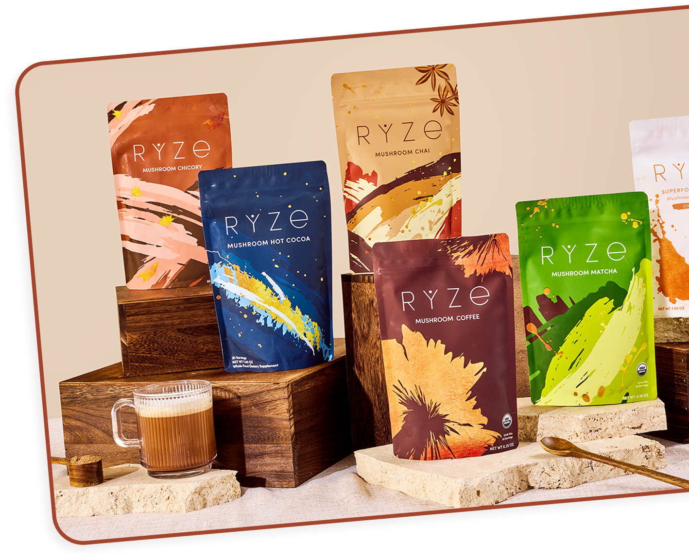 As people shared how RYZE was changing their mornings, they started asking for more. Something with a different taste. Something without caffeine. Something to wind down with.
